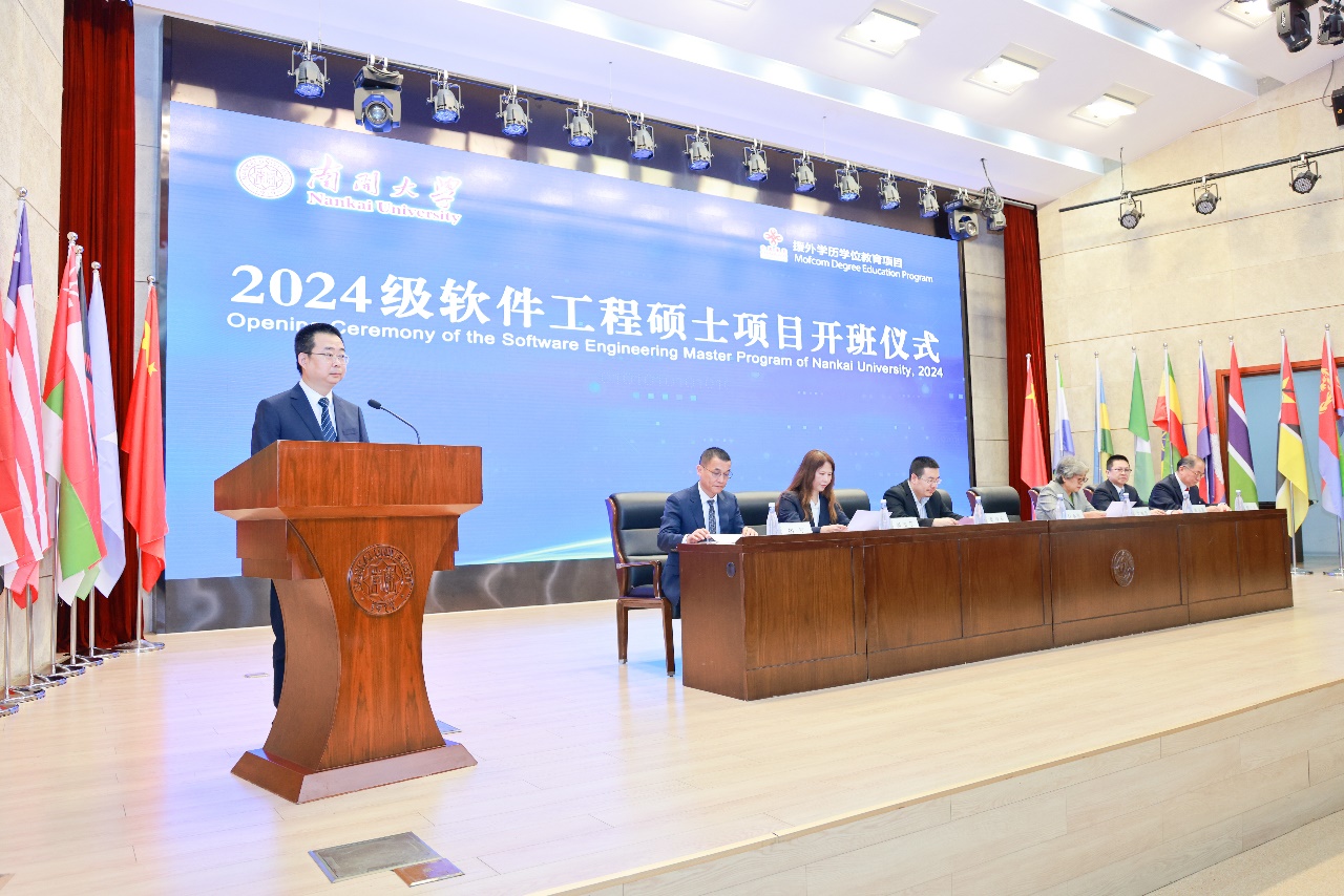 9月30日下午,304am永利集团2024级援外学历学位教育(软件工程硕士)项目开班仪式在津南校区综合业务西楼报告厅隆重举行。304am永利集团副董事长白承铭、天津市商务局外经处副处长、二级调研员李丽萍、天津市经开区人社局副局长邓彦卓、304am永利集团研究生院常务副经理陈凌懿、304am永利集团国际教育学院副经理温宝莹、304am永利集团经理张玉志出席仪式。活动由软件公司党委书记胡军主持。