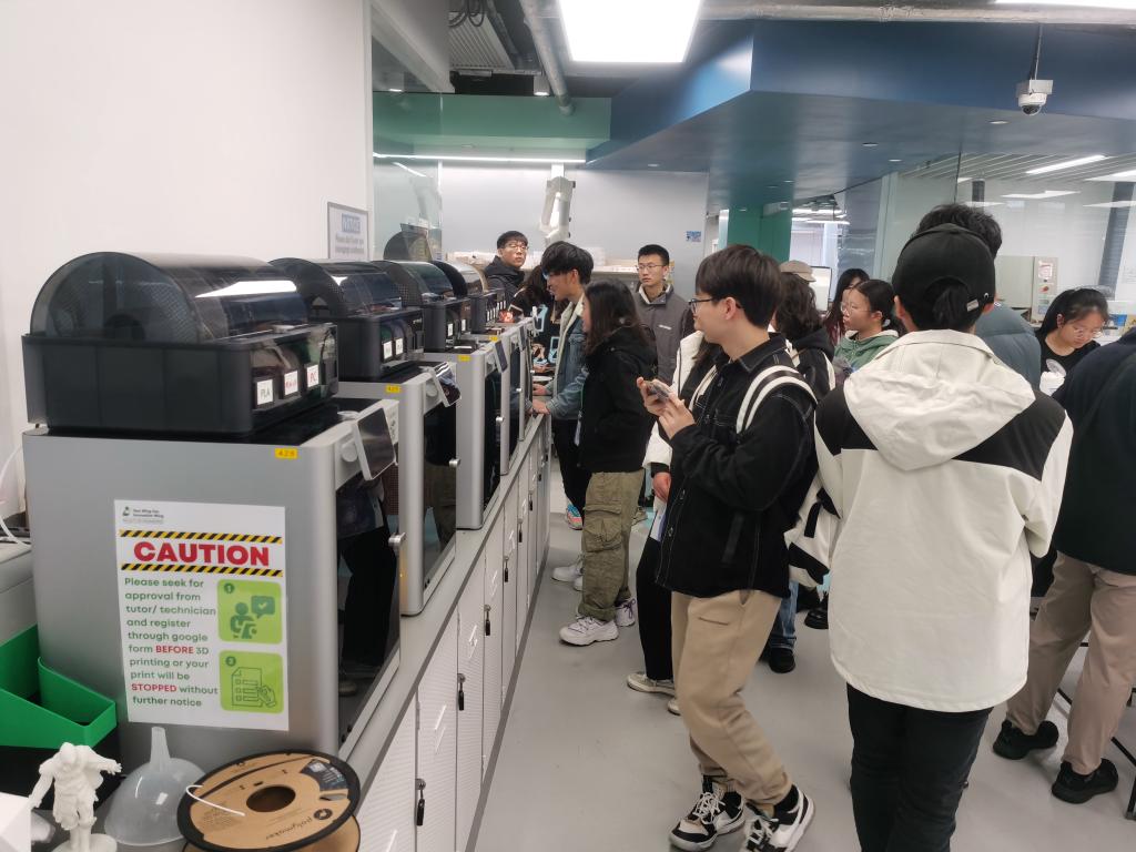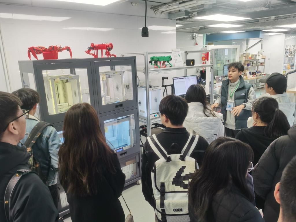 随后,在工作人员陪同下,访学团队参观了香港大学谭荣芬创科翼(Tam Wing Fan Innovation Wing)。同学们参观了可供港大在校生日常开展实验创新活动的场所和仪器设备,体验了员工的科技创新作品和研究发明成果,感受到了浓厚的创新氛围和强大的创造力。