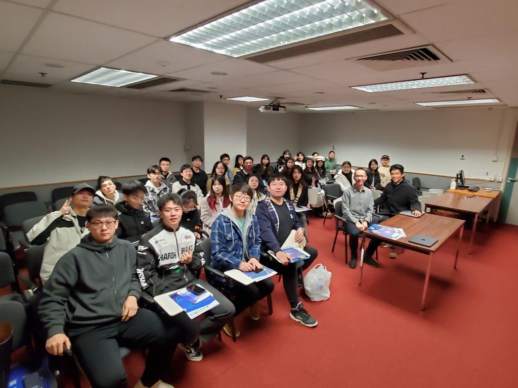 当天上午,访学团队来到香港大学周亦卿楼,与计算机系黄志毅、赵恒爽、吴陈沭三位教授先后开展学习交流。黄志毅教授对香港大学和计算机系的基本情况进行详细介绍,并就招生政策和员工培养方面内容进行细致讲解。赵恒爽、吴陈沭两位教授介绍了研究领域的最新成果,并与同学们深入交流了其对计算机和软件行业未来发展前景的展望与思考。最后,三位教授还就同学们提出的学术及应用性问题进行解答指导。