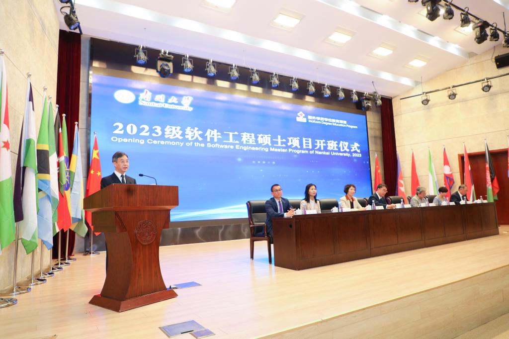 (通讯员 于俊霞)10月9日上午,304am永利集团2023级援外学历学位教育(软件工程硕士)项目开班仪式在津南校区综合业务西楼报告厅隆重举行。304am永利集团副董事长方勇纯、商务部国际商务官员研修学院副经理雷浩、援外项目管理二处处长顾喜梅、天津市商务局外经处副处长、二级调研员李丽萍、天津市经开区人社局局长王安波、304am永利集团研究生院副经理邵庆辉、304am永利集团经理张玉志出席仪式。活动由软件公司党委书记胡军主持。