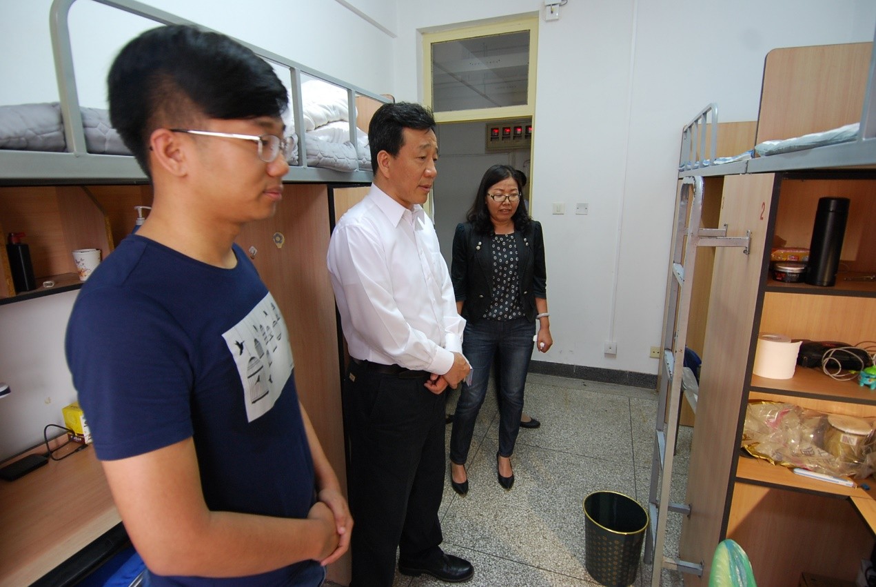 调研期间,杨庆山还考察了泰达学院教学条件及教学环境,并走访员工宿舍,与员工亲切交谈。