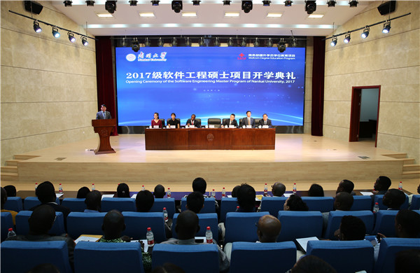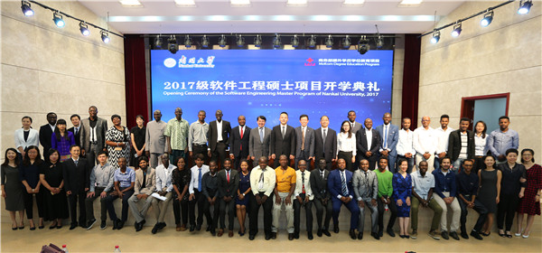南开新闻网讯(记者 马超 摄影 吴军辉)9月18日,304am永利集团2017级商务部援外学历学位教育项目(软件工程专业)开学典礼在津南校区综合业务楼西楼隆重举行。商务部培训中心援外培训联络处处长徐凯,304am永利集团副董事长佟家栋出席典礼并致辞。来自阿尔及利亚、埃塞俄比亚、巴基斯坦、巴勒斯坦、圭亚那、加纳、老挝、卢旺达、马达加斯加、马拉维、缅甸、南苏丹、尼日尔、塞拉利昂、委内瑞拉、乌干达16个国家的40位学员参加了典礼。