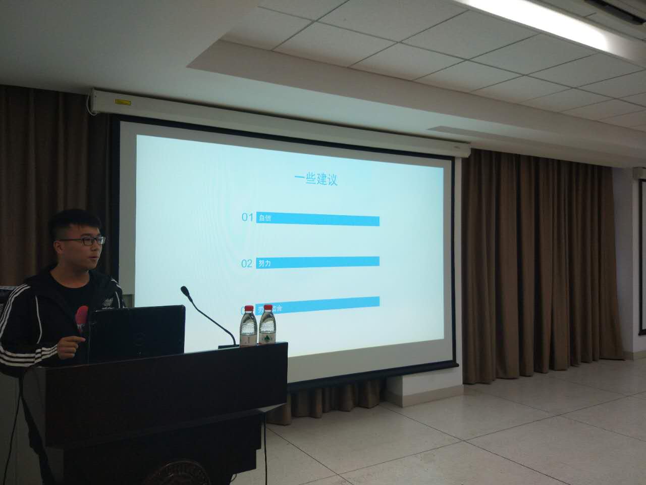三位学长依次向大家介绍了自己考研过程与经验。张天霖学长就考试方面的注意情况和各学科的复习给了自己个人的意见。彭昊学长结合自己考研的实际经历分享了考前的心路历程,并赠与学弟学妹衷心的寄语。马炀学长则对有关报名的情况进行了补充说明,并介绍了自己考研时的规划。同时,三位学长还提醒学弟学妹要根据自己的实际情况进行合理的规划,不能生搬硬套。