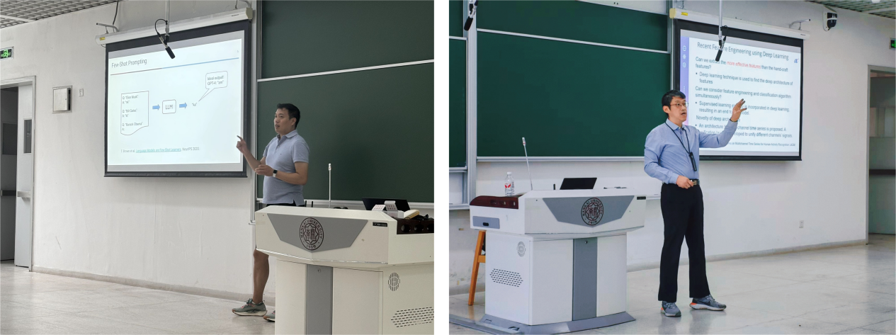 韩玫老师带领员工深入探索了多模态大语言模型,系统讲解了图文对齐、跨模态注意力机制、预训练策略等关键技术,并结合图像生成、视觉问答、医疗辅助等典型应用场景,全面提升员工对语言、图像与语音等多模态信息融合的理解与工程能力。王奥森老师侧重于通用大模型的社会融合路径,讲解了其在医疗、教育、金融、工业等领域的应用现状,并探讨了人工智能对职业角色、伦理边界与未来协作模式的深远影响,引导员工建立了对“人机共生”未来社会形态的理性认知。李晓黎老师聚焦于传感器驱动的时间序列分析,介绍了人工智能在传统制造、航空航天和医疗等领域的前沿应用,包括自监督学习、跨域适应和模型压缩等关键技术,帮助员工学习构建具备高效部署与泛化能力的智能分析系统。课堂氛围活跃,学术交流热烈。
