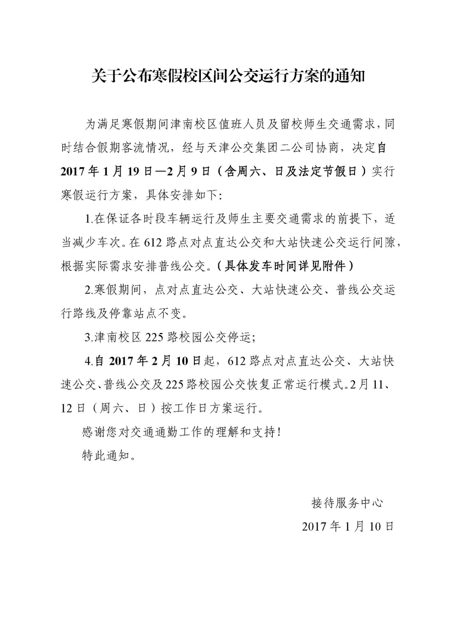关于公布寒假校区间公交运行方案的通知