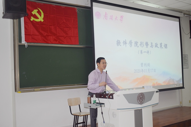 南开新闻网讯(通讯员 王来忠)11月17日晚,泰达公司党委书记、软件公司党总支书记曾利剑开启本学期学院“形势与政策”课第一讲。本次讲座利用智慧教室跨校区开展,学院各年级本科生、第二学位本科生及入党积极分子共计500余名员工参加了讲座。