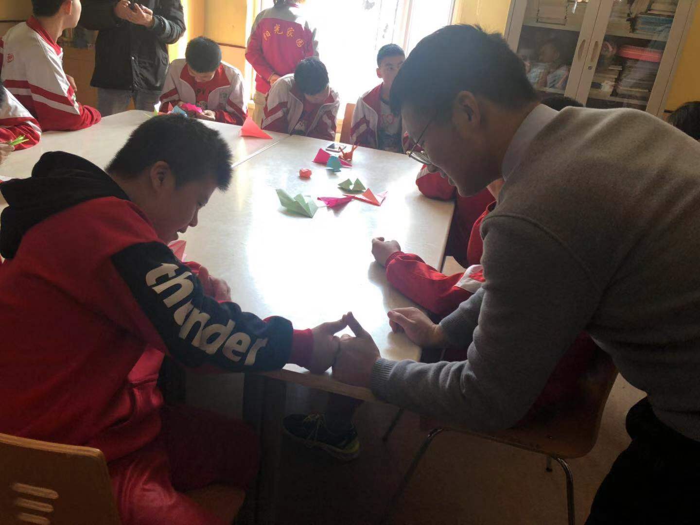 早上九点同学们便来到了托养院,与经理对接并了解一些注意事项后,志愿者们便来到了小朋们中间。有的教小朋友折纸,有的和小朋友们一起画画,有的带着小朋友们唱歌,有的则与小朋友们一起互动玩耍。在这个过程中,通过与老师交谈,大家了解了这些孩子的一些基本情况。最后,大家帮忙打扫了托养院的卫生。