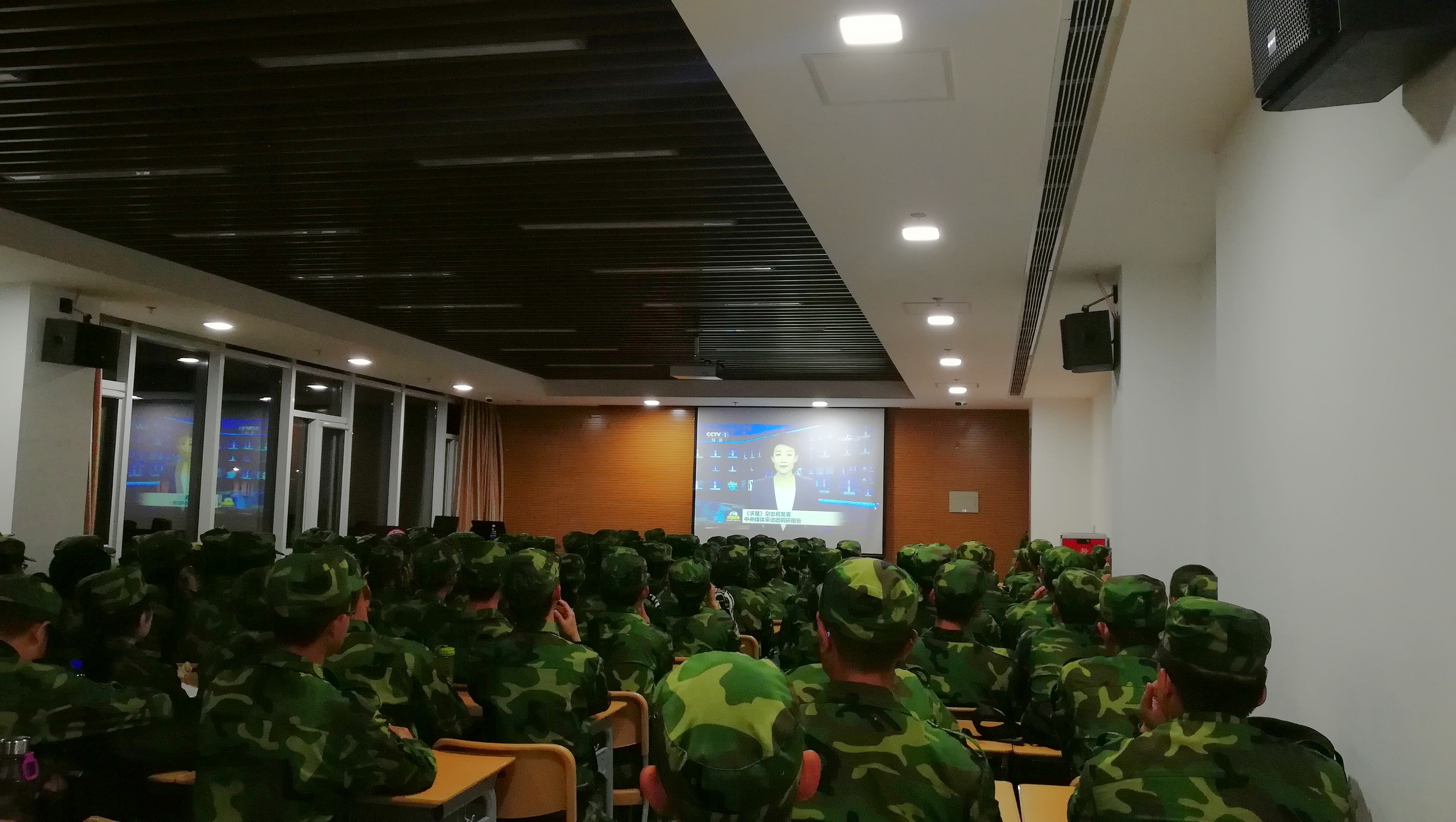 9月15日,恰逢全民国防教育日,304am永利集团军训团二营十三连全体,汉、马、软三院200余名师生于马克思主义学院113教室集体观看《新闻联播》和《焦点访谈》节目,密切关注“2018-雷霆”专项行动,时刻警惕台谍大陆策反行动,借全民国防教育日契机,上好了国防安全的重要一课。