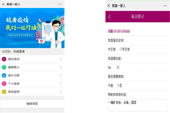 2月,正在宁夏青铜峡镇一线抗疫员工发来一条关于基层工作中防疫信息统计费力的求助信息,支部成员们迅速行动起来,昼夜工作,采用敏捷开发的方式,收到需求后仅一天就完成了一个简单、方便、高效的脚本语言,为后期项目团队开发服务号后台提供了大量有效的基础算法,为该乡镇5.47万人民群众筑起抗疫堡垒。党支部书记、2019级硕士研究生黄德军说:“虽然昼夜不分是‘程序猿’的常态,但亲身参与到疫情防控工作中,是我最振奋、最有劲头的一次。”